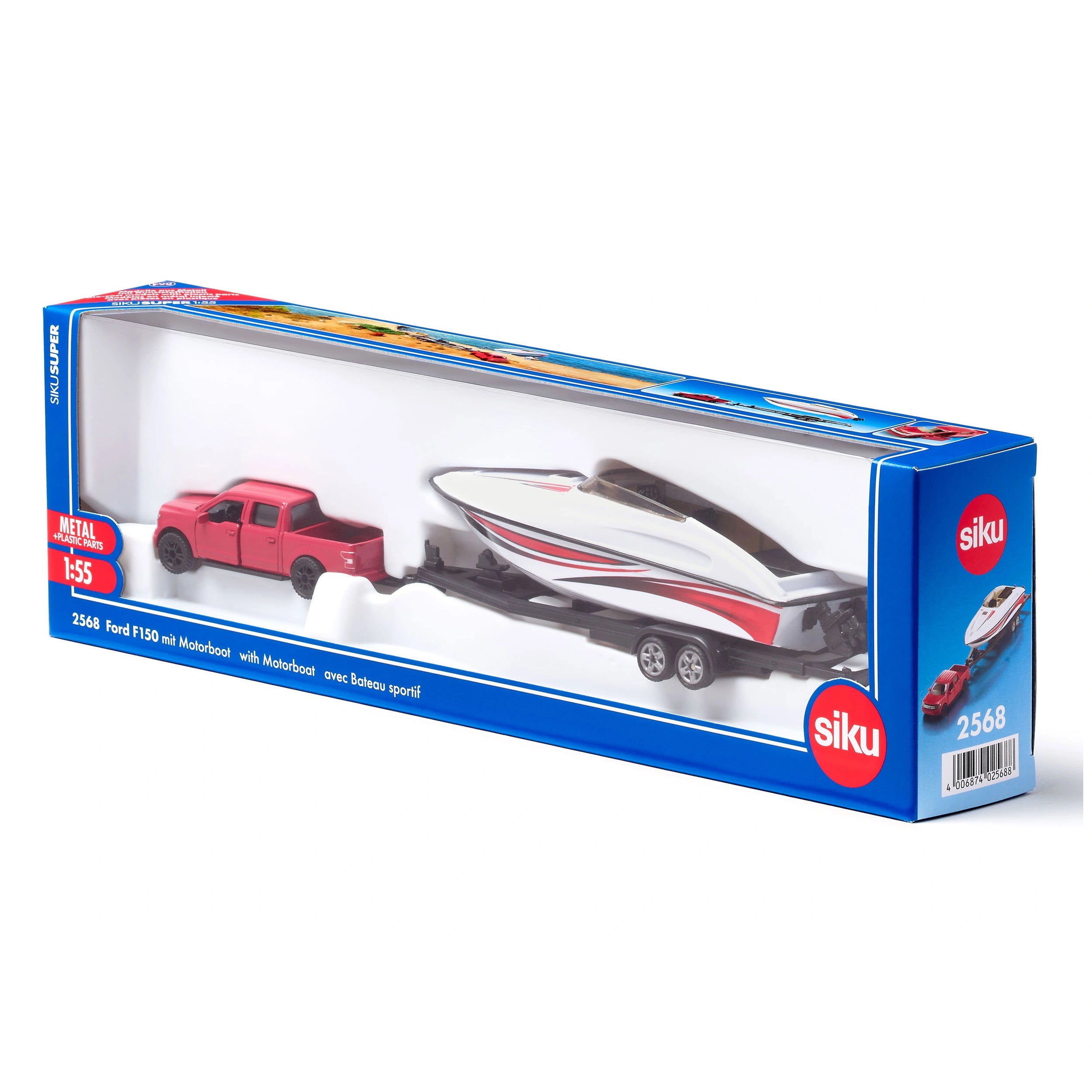 Introducing the Siku - In The City In The Countryside New Models On The Water Ford F150 with motorboat, a remarkable toy set that captures the essence of adventure and exploration. This exceptional play vehicle set features the iconic Ford F-150, a symbol of American automotive excellence, paired with a stunning motorboat that promises endless imaginative play. Designed for children who love to embark on thrilling journeys, this toy set is perfect for both indoor and outdoor adventures.