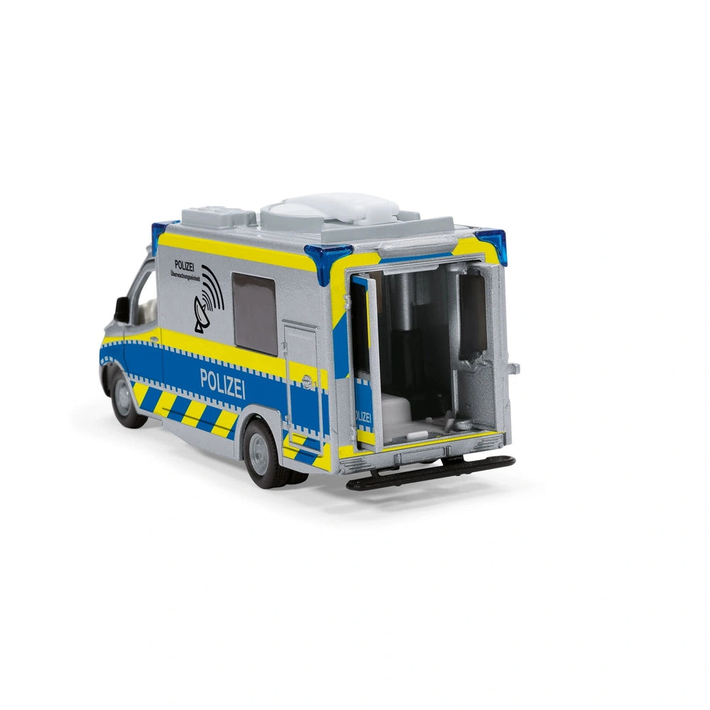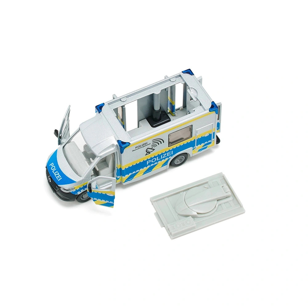 The Siku Mercedes-Benz Sprinter Police vehicle is equipped with a rotating satellite dish on its roof, symbolizing the advanced communication capabilities essential for modern police operations. This feature not only enhances the authenticity of the model but also allows children to envision complex scenarios where reliable communication is crucial. The satellite dish can be conveniently folded down during travel, adding to the vehicle's versatility and playability.