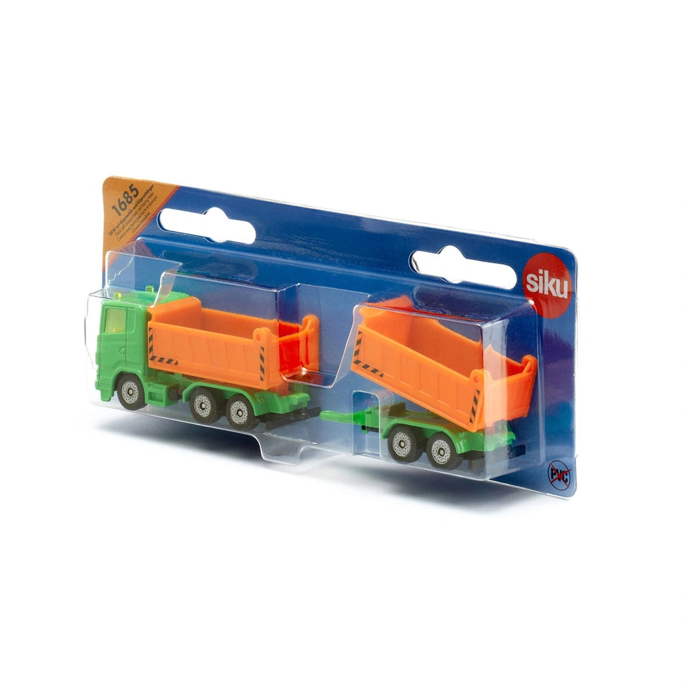 Introducing the Siku Truck with Dumper Body and Tipping Trailer, a versatile play vehicle designed to inspire creativity and imaginative play in children. This meticulously crafted toy is not just a truck; it is a miniature representation of the heavy-duty vehicles found on real construction sites. With its robust design and functional features, this truck is perfect for young builders eager to engage in construction-themed play.