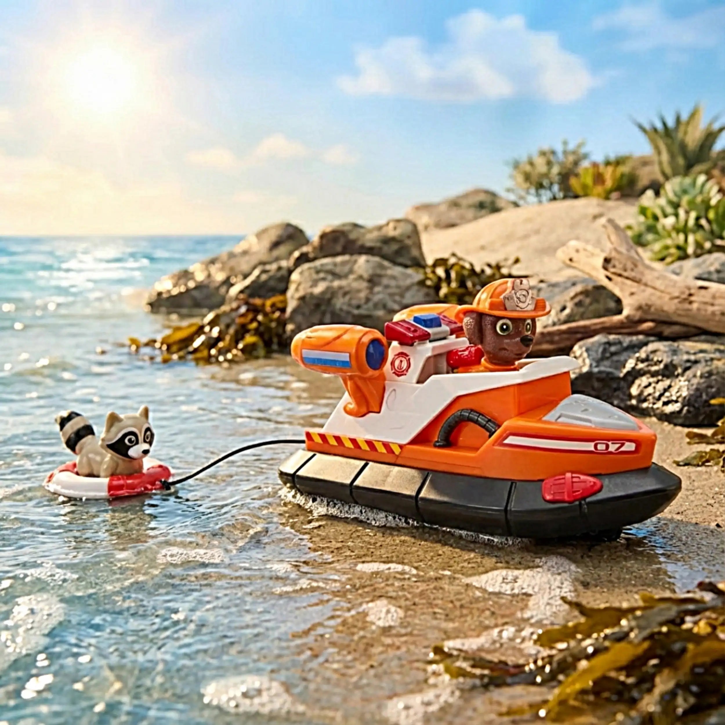 This exciting set includes two key figures to drive the narrative: the heroic pup Zuma and an adorable raccoon animal friend who needs saving. Zuma stands over two inches tall, perfectly scaled for preschool hands, and comes authentically dressed in his complete Fire Rescue uniform, complete with his signature orange helmet and gear. He’s ready to pilot his boat or dive into the water at a moment's notice. The inclusion of the raccoon figure immediately establishes a mission, inspiring children to create their own stories of peril and rescue, adding a rich, emotional layer to their playtime.