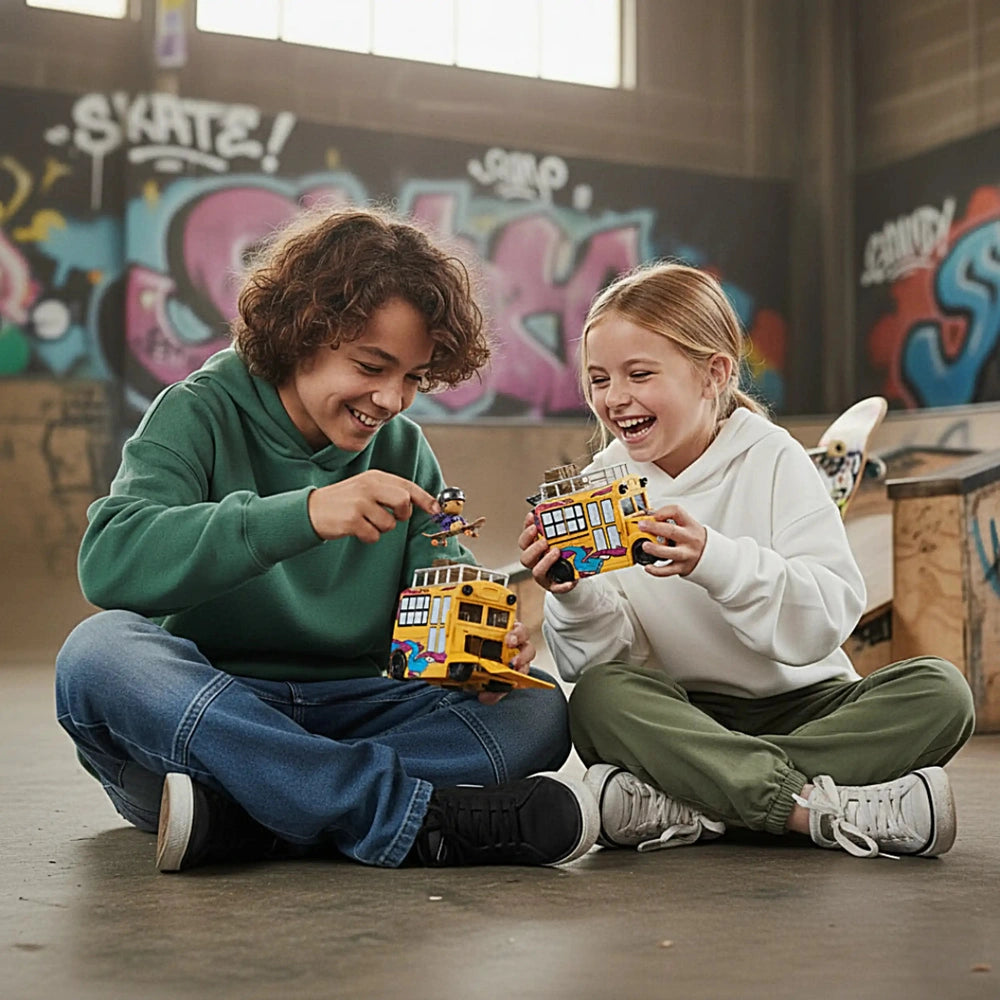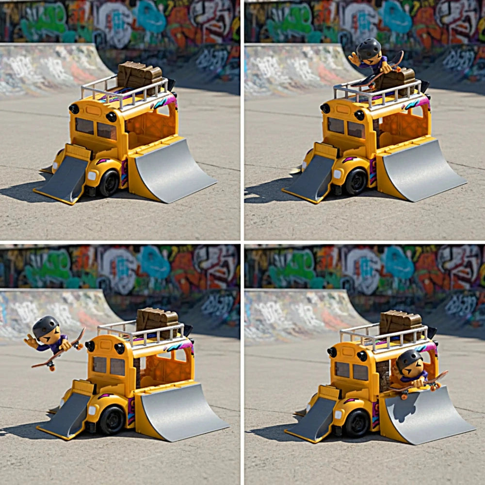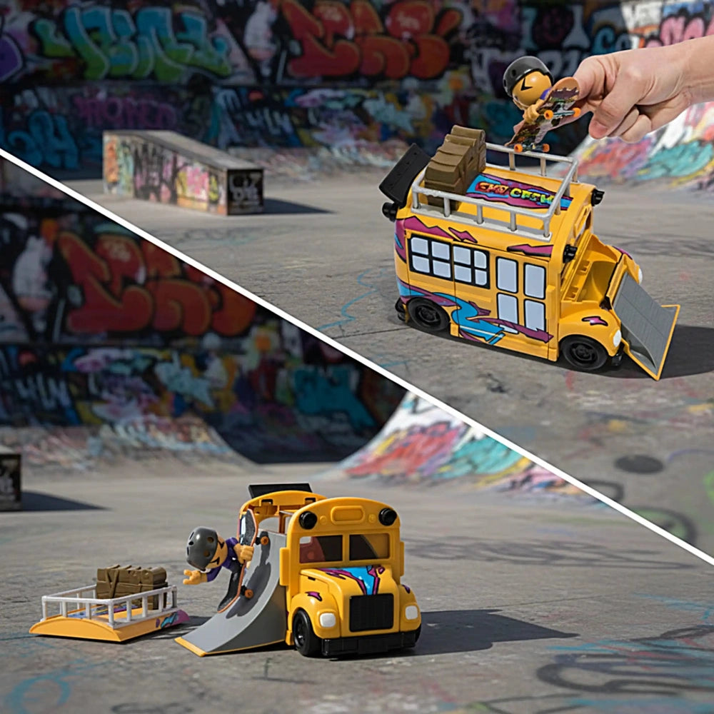 The Tech Deck SK8 Crew Buss Playset is designed with three ramps that allow young skaters to practice their fingerboarding skills in a dynamic environment. Simply pop the top of the bus to reveal the skatepark, where kids can roll their fingerboards down the ramps and perform impressive tricks. The included Sk8 Crew figure is specifically crafted for small hands, making it easy for children to snap it onto the fingerboard and recreate real skateboarding moves, such as ollies and power slides.