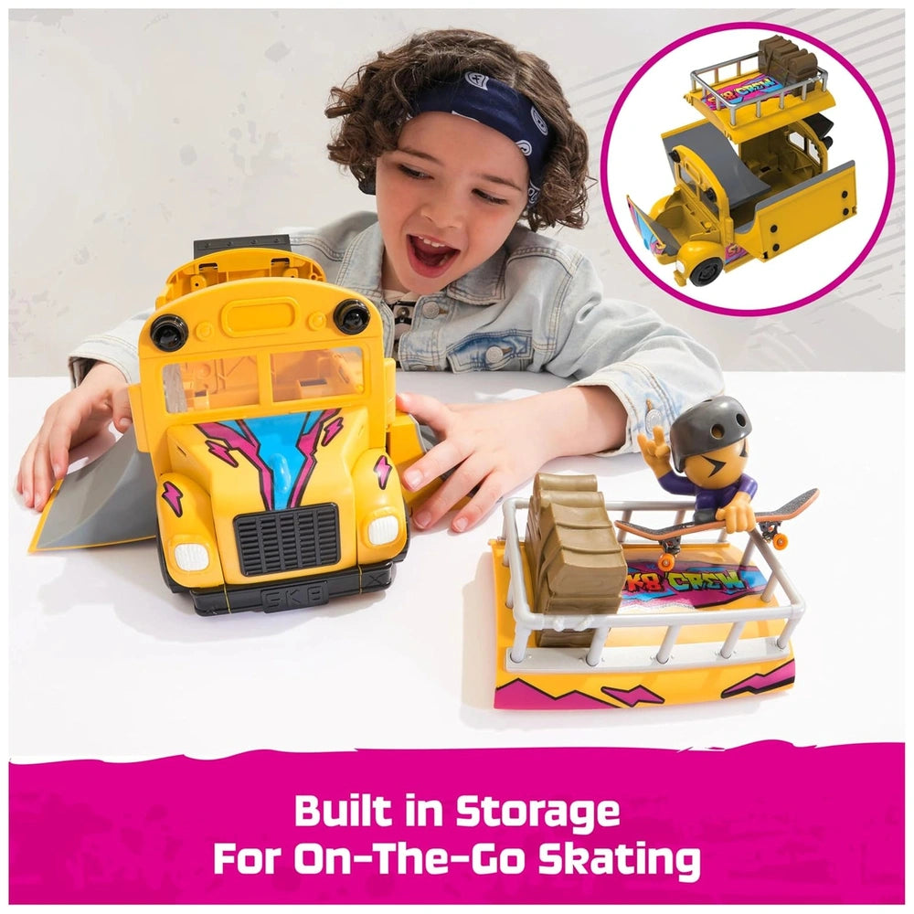 One of the standout features of the Tech Deck SK8 Crew Buss Playset is its real working tires, allowing the bus to roll smoothly as kids take their fingerboarding adventures on the go. Cleanup is a breeze; simply fold back the ramps and store the fingerboard and Sk8 Crew member inside the bus for easy transport. This feature not only enhances playtime but also encourages organization and responsibility in young users.