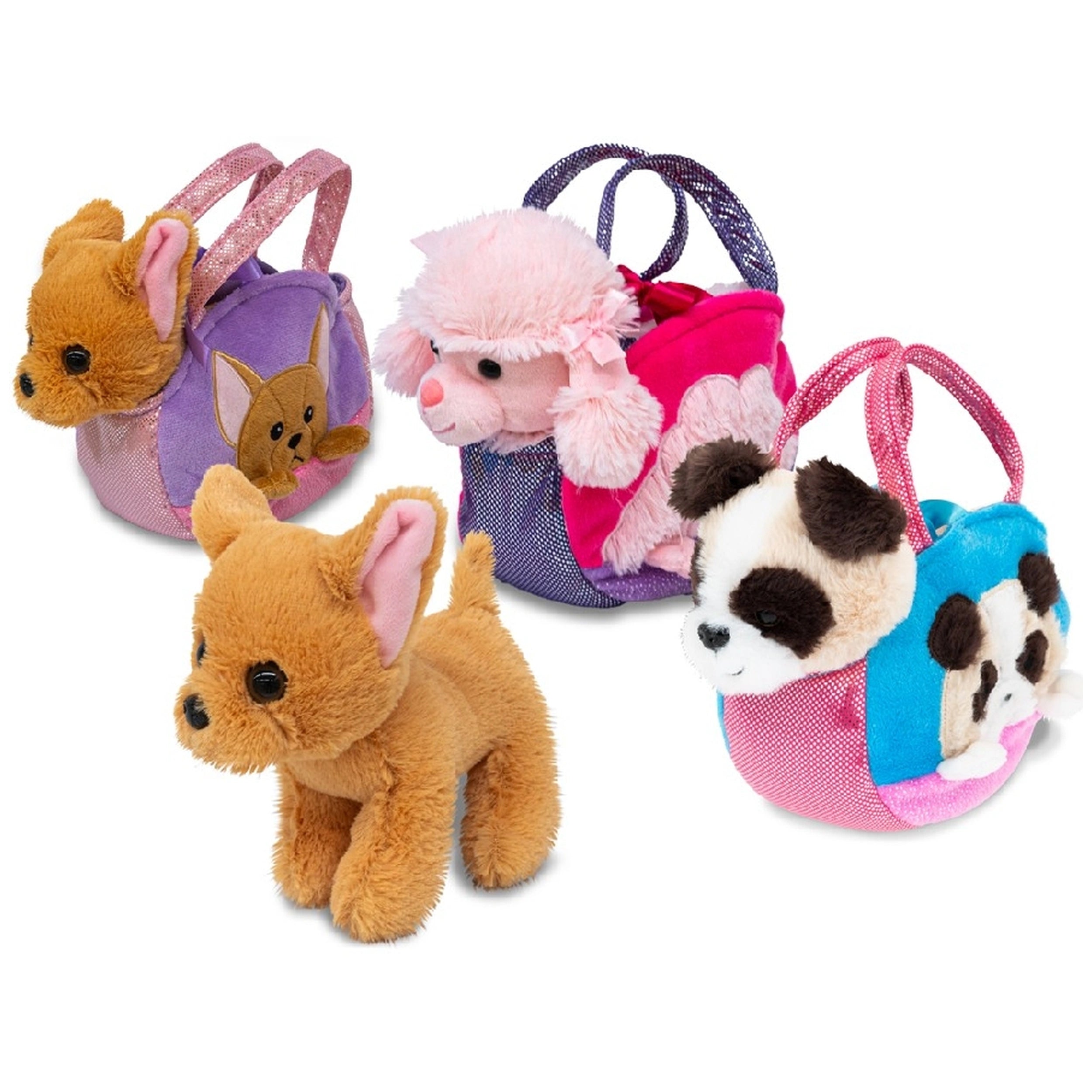 Introducing the Teorema Plush Puppy in Glitter Handbag Assortment, a delightful fusion of fashion and fun designed for young pet lovers. This enchanting collection features an array of ultra-soft, collectible Plush Puppies, including popular breeds like the Chihuahua and Poodle, all nestled within stylish glittery handbags. Each purse is not only a portable pet carrier but also a fashionable accessory that encourages imaginative play and nurtures creativity in children.