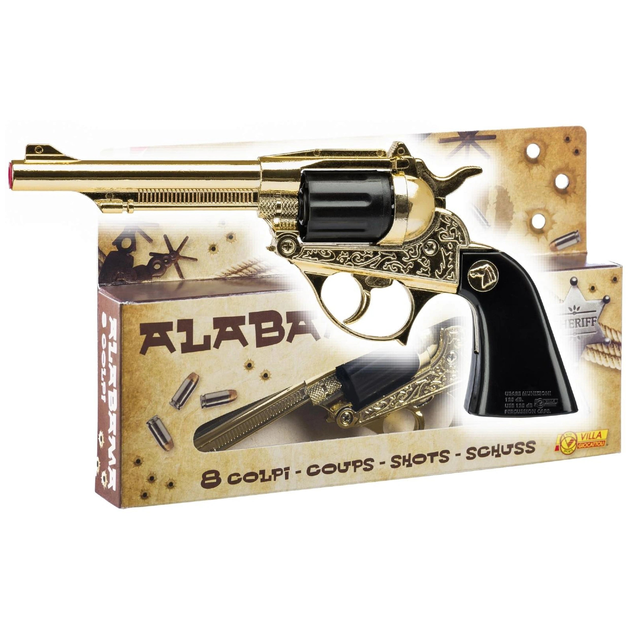 The versatility of the Villa Alabama Gold 8-Shot Toy Revolver allows it to seamlessly integrate into a wide range of imaginative play scenarios. Whether children are reenacting classic cowboy tales, engaging in high-stakes poker games, or bringing notorious outlaws to justice, this toy enhances their playtime with a touch of golden flair. The 8-shot capacity encourages longer play sessions, enabling children to develop intricate storylines without frequent interruptions. Additionally, the toy can spark interest in the history of the Wild West, providing an opportunity for parents to engage in educational discussions while their children play.